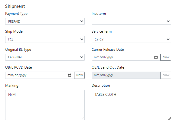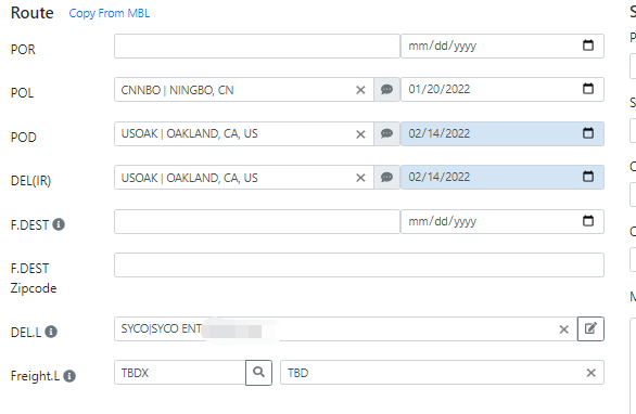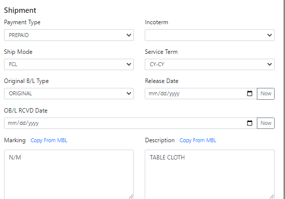 第二步,Create New MBL,点击Create New MBL 在Inbound > Ocean shipment Page