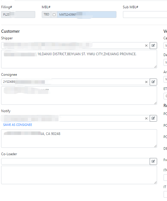 需要MBL,HBL(如果没有,即HBL = MBL info)