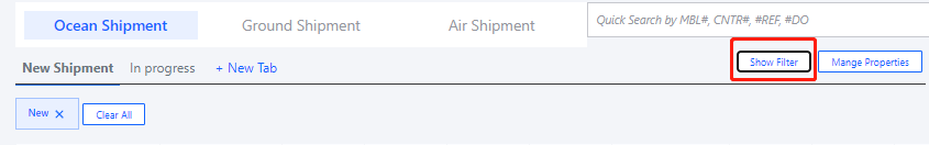 What we can do in this page? 1. Add Tab for specific filters 2. Custimize table view 3. Check Ocean shipment detail and manage the timelines. 4. Check Ground shipment detail and manage the timelines. 5. Check Air shipment detail and manage the timelines.
